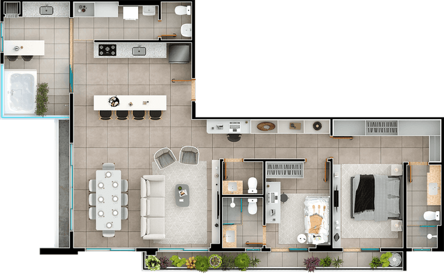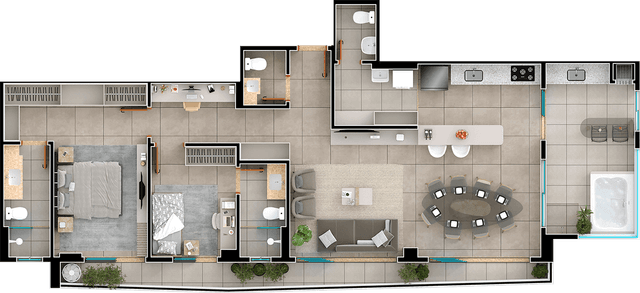 126m², Penthouse - 3 suítes