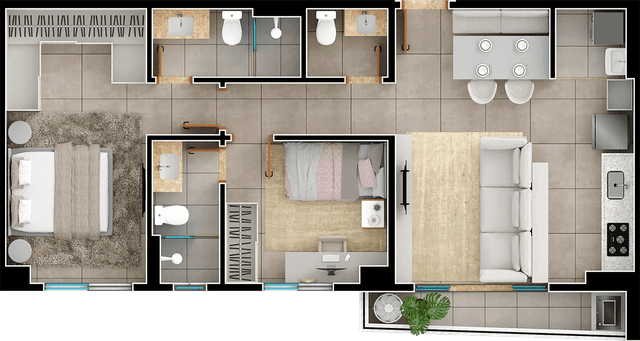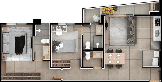74m², 2 suítes