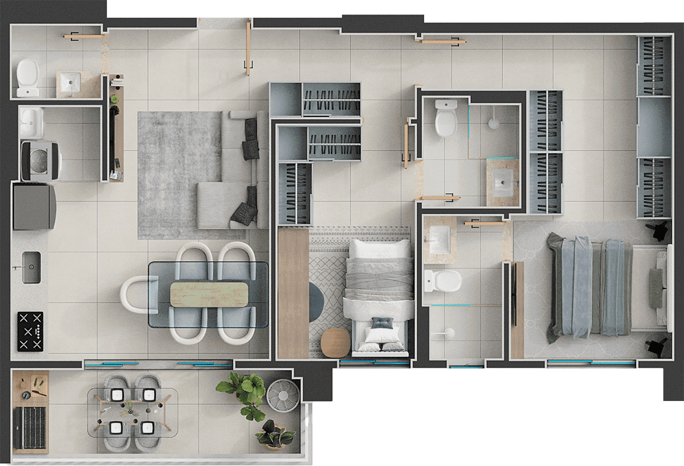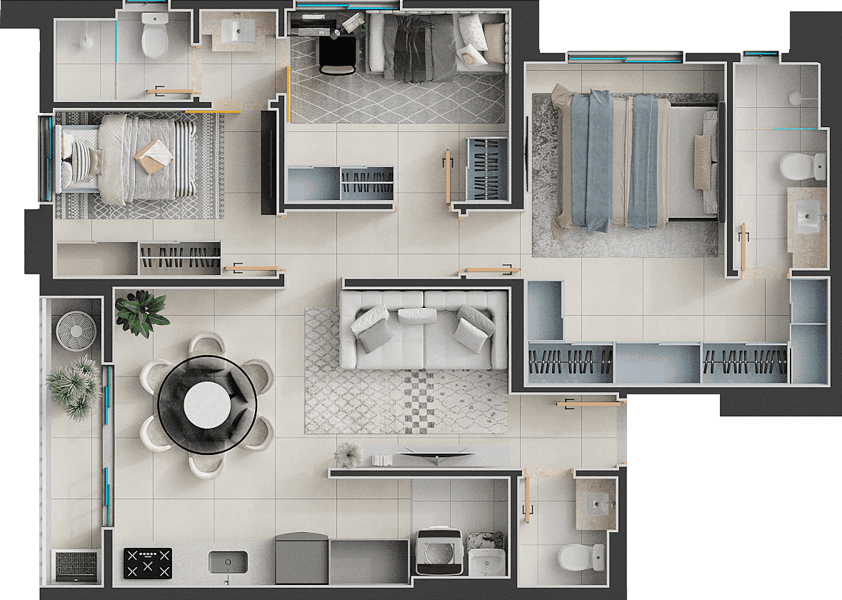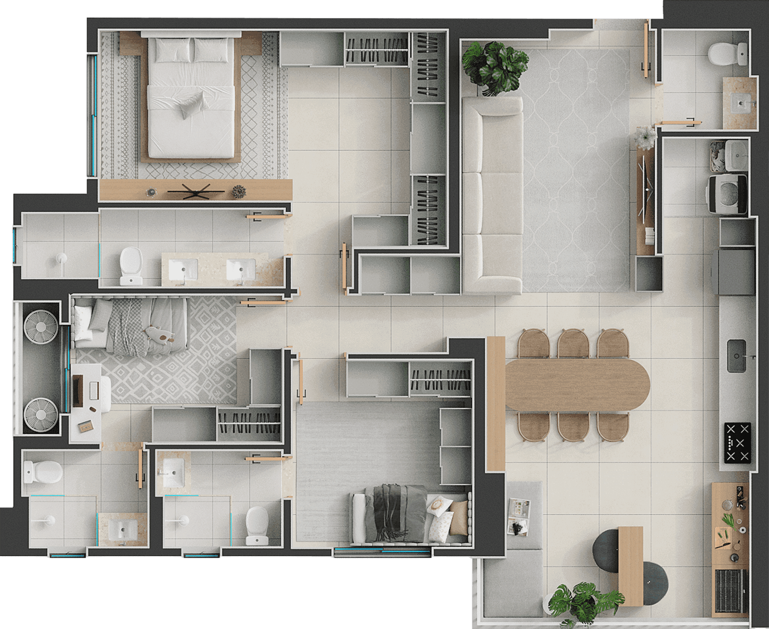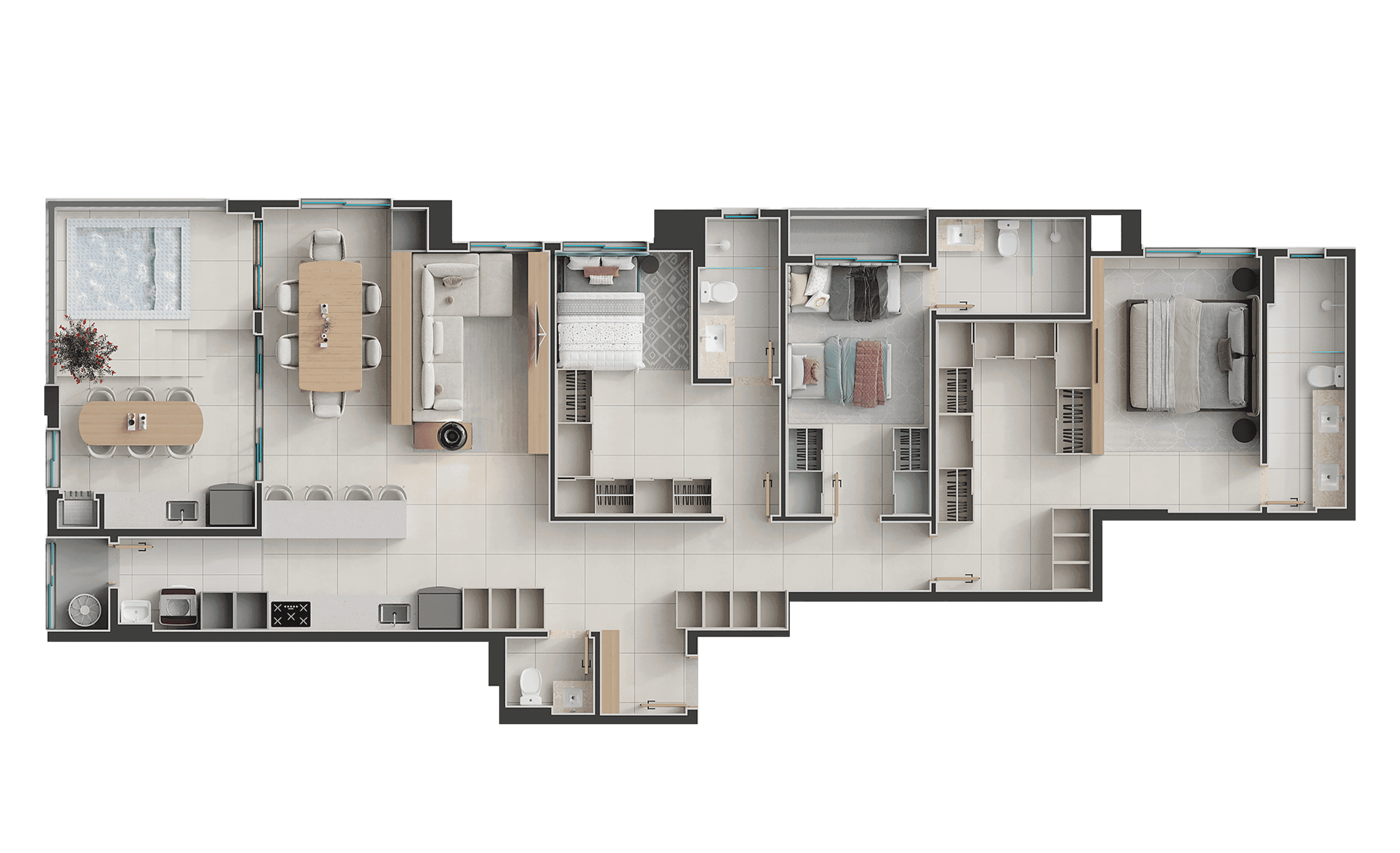186m², Penthouse - 3 suítes