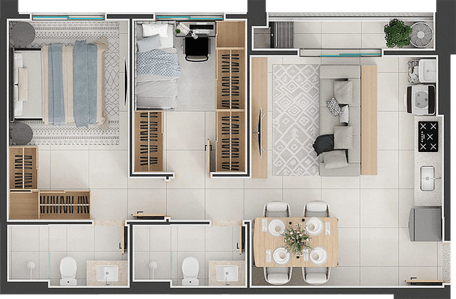 60m², com suíte
